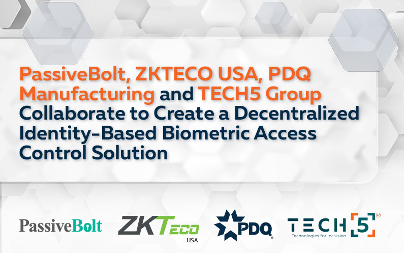 PassiveBolt, ZKTECO USA, PDQ Manufacturing, and TECH5 Group have announced their partnership and plans to develop a new biometric access control solution based on decentralized identity technology. This collaboration is aimed at delivering a more secure and efficient way for businesses to manage access to their premises using biometrics, but without needing to store or control biometric data.